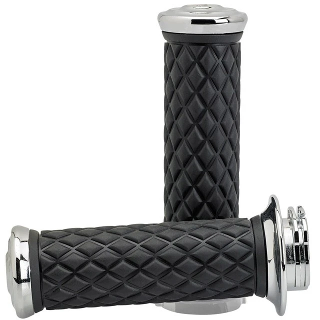 Die BILTWELL Griffe „AlumiCore“ in Chrom sind für kabelbetriebene Harley-Davidson Motorräder geeignet. Diese hochwertigen klassischen Griffe sind modern und nach neuen Standards hergestellt. Die Griffgummis sind durch die abnehmbaren Aluminiumendplatten einfach austauschbar für einen individuellen Look!