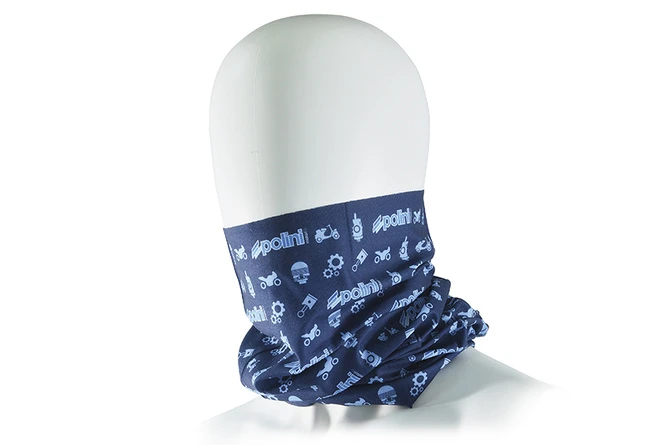 For Polini fans: Necktube from Polini, blue with Polini lettering and other scooter-related symbols. Can be worn as a scarf / neck warmer, headband or headwear / sun protection.