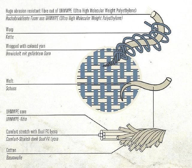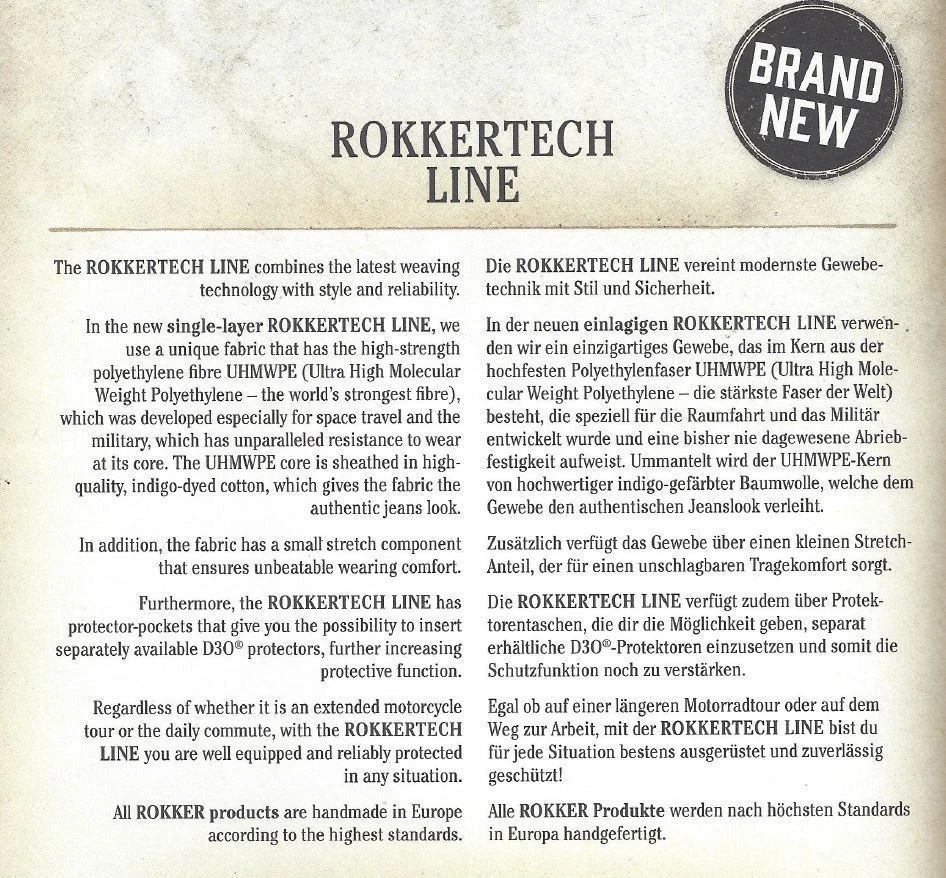 - Material: 14 oz Rokkertech Denim (einlagigige UHMWPE Faser)