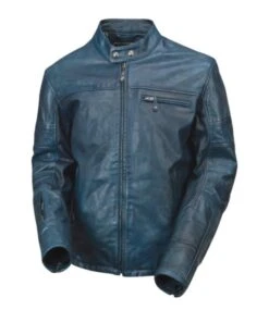 ROLAND SANDS Jacke Ronin steel: stahlblaue Motorrad-Lederjacke in limitierter Auflage von ROLAND SANDS DESIGN.
